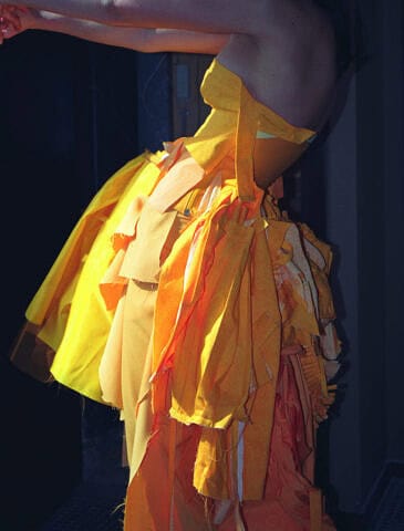 Door kleding als materiaal te zien kan je er, op eenzelfde manier als met bijvoorbeeld foto’s in een collage, een nieuw beeld of kledingstuk mee maken en een ander verhaal mee vertellen. Dit letterlijk knippen en plakken met bestaande kleding is een veelgebruikte techniek bij toonaangevende modeontwerpers om tot nieuwe ontwerpen te komen.