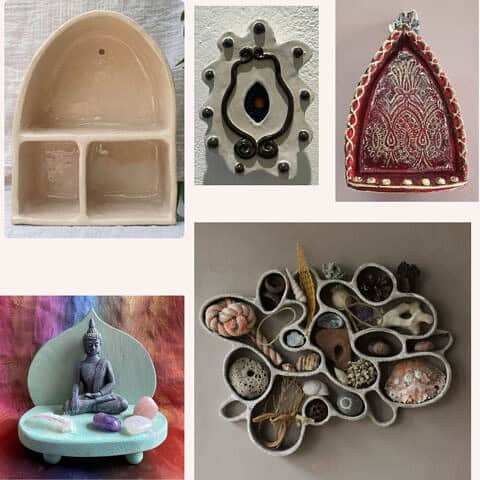 Een (huis)altaar kan een plek zijn waar je wat mooie spulletjes verzamelt en misschien een kaars laat branden. Een klein rustpuntje in je huis, een speciaal plekje met aandacht voor geliefden, mooie vondsten of een bijzondere herinnering. In deze tweedaagse workshop gaan we een altaartje maken van keramiek.