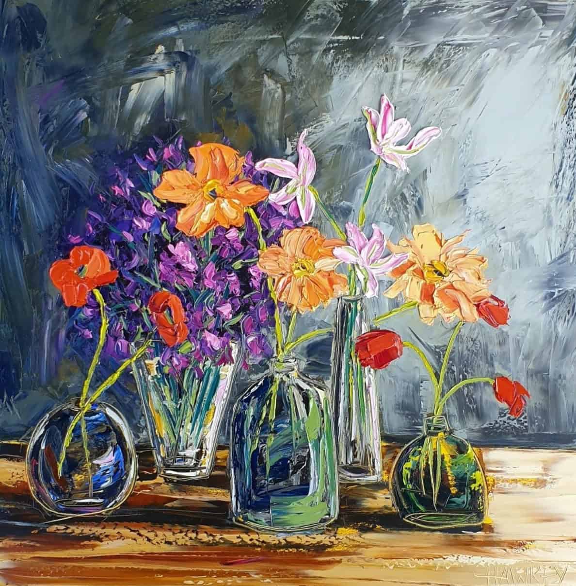 Na het aanvankelijke tekenend schetsen wordt er met acryl geschilderd. Dit zal begeleid worden en in stappen opgebouwd. Hierbij wordt de acrylverf op verschillende manieren gebruikt, van transparant tot dekkend en eventueel extra pasteus voor accenten en variatie in schilderwijze. Dit alles om een ‘levendig stilleven’ als geheel te creëren