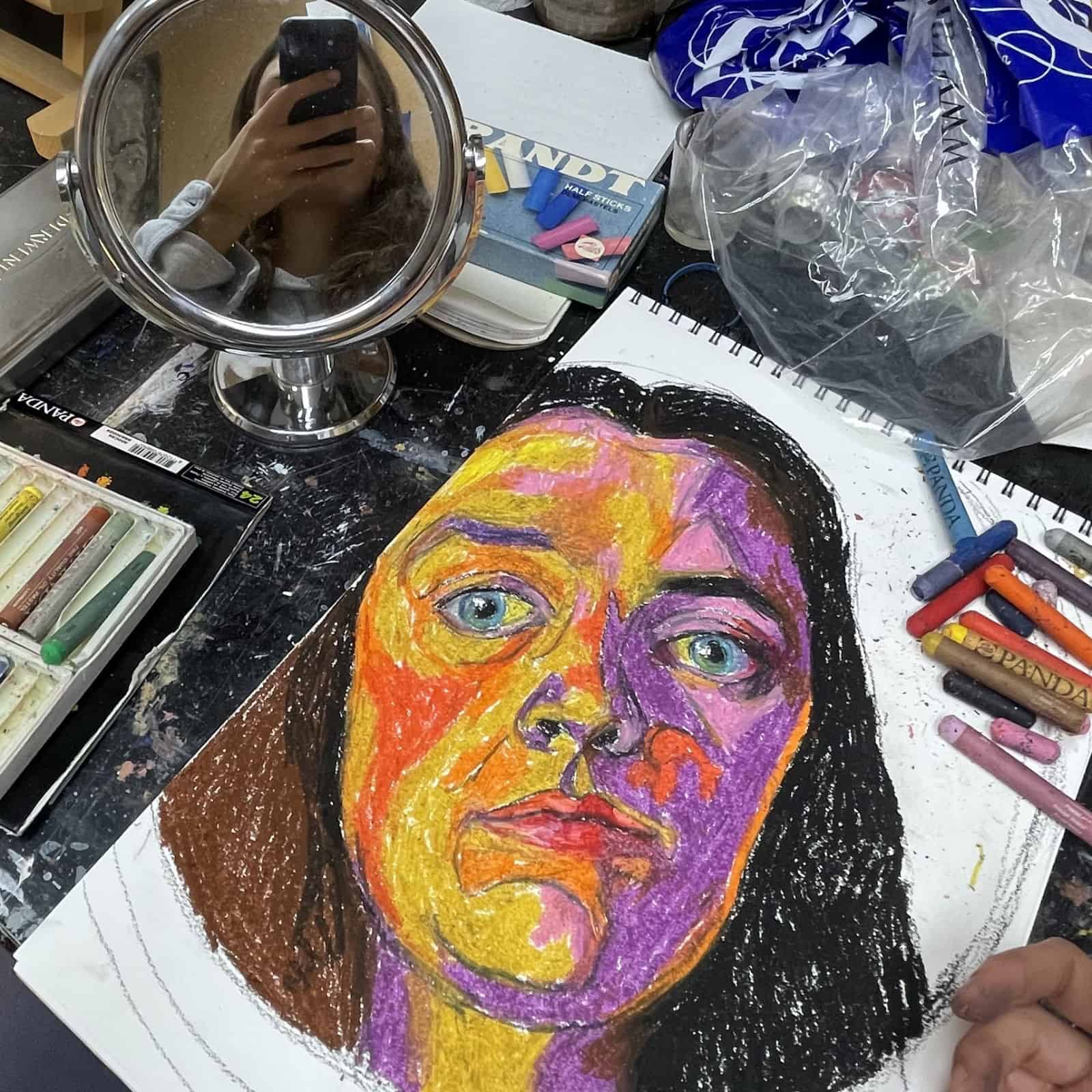 We werken met een breed scala aan materialen—van potlood, houtskool en softpastel tot vetkrijt, waterverf en acryl—zodat je kunt ontdekken welk materiaal het beste aansluit bij jouw manier van kijken en verbeelden.